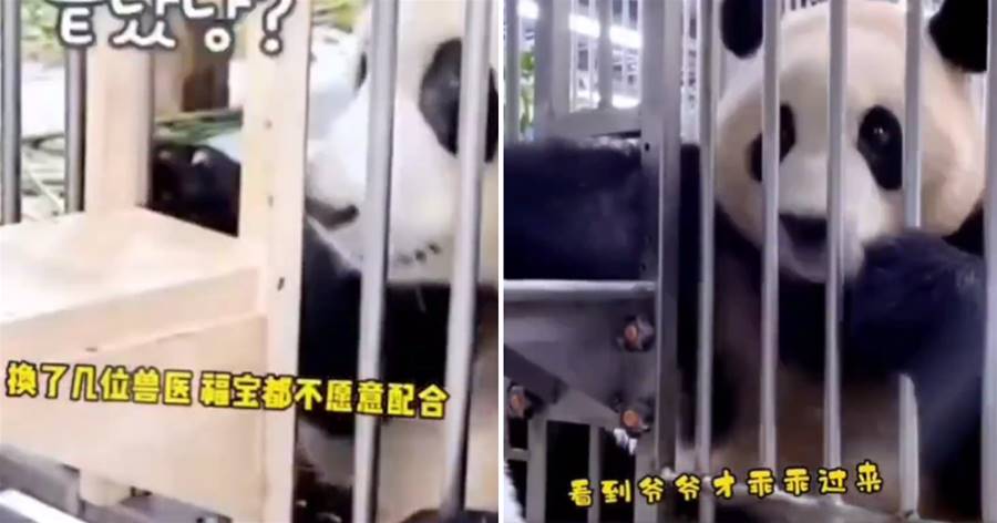 這不,工作人員來給福豬豬做例行體檢,爺爺不在身邊,福豬豬特別不開心,渾身上下寫滿了抗拒,臉上都印著「不配合」三個大字。